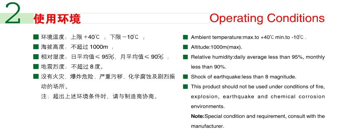 3)相对环境温度:日平均不大于95%,月平均不大于90%